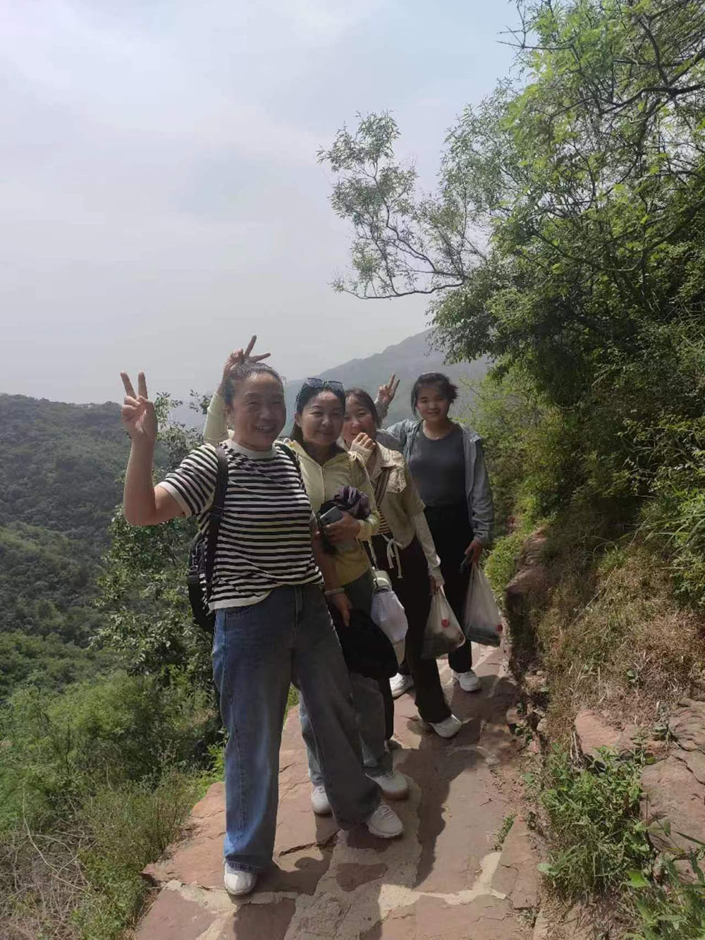 到達景區(qū)后,大家乘坐景區(qū)內(nèi)小火車來到趙匡胤千里送京娘的青銅雕像前合影留念。撫摸著青銅雕像,品味著這個凄美的愛情故事,感慨萬千。隨后,大家乘上游船,欣賞京娘湖碧波蕩漾的旖旎風光,感受著一線天峰林絕壁的壯美風景。到達碼頭后,大家拾級而上開始登山。隊伍分為前鋒、后營、中軍,團隊前后呼應(yīng),協(xié)調(diào)行動。上山的路雖然很陡峭曲折,有的路段甚至沒有臺階,但大家相互鼓勵,相互加油,堅持著向上攀登,向上攀登。中午,在山里人家簡單用餐后小憩一會兒,午后繼續(xù)向山頂發(fā)起沖鋒。每當大家疲憊至極時,就停下來休息一下,吹著清爽怡人的山風,回眸走過的山路,又是一番別樣的風景,一身的疲憊和勞累一掃而光。短暫休息后,大家繼續(xù)向上攀登,有的員工走不動了,落在了后面,大家就扶一把,拉一把,幫助他們跟上隊伍。在大家的共同努力下,終于成功登上了宋祖峰的頂峰,整個團隊沒有一個人掉隊。特別是車間女工表現(xiàn)的非常頑強,體現(xiàn)了不怕苦不怕累、積極向上的精神風貌。團隊的一些老員工,還有員工家屬,不管是老人還是孩子,都表現(xiàn)的很好,堅持到了最后,站上了峰頂。